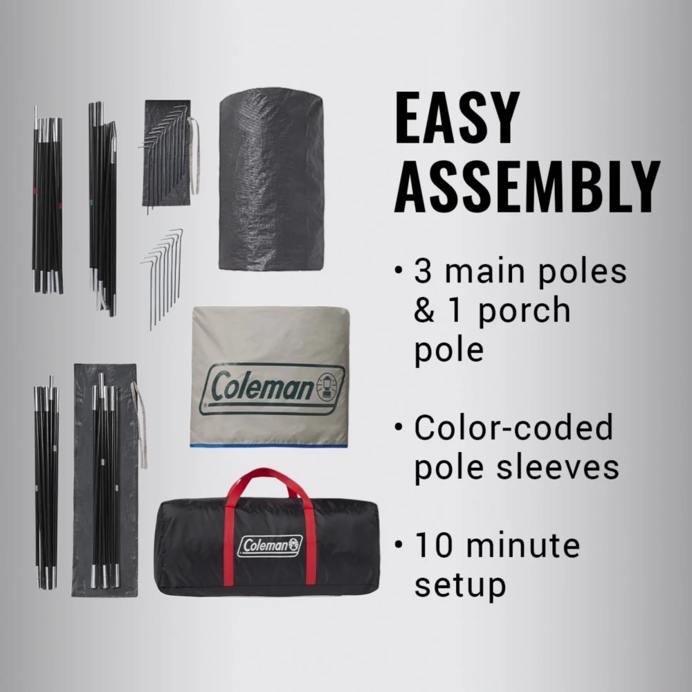 - Sets up in as fast as 10 minutes with 3-pole design and color-coded continuous pole sleeves