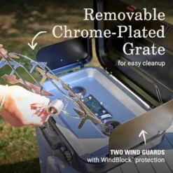 Hit the road with a Classic 3-Burner Camping Stove which makes it easy to cook great meals outdoors. Its built-in carry handle makes the stove easy to move between the trunk and the campsite. Ready to head home? The removable chrome-plated grate makes cleanup quick.