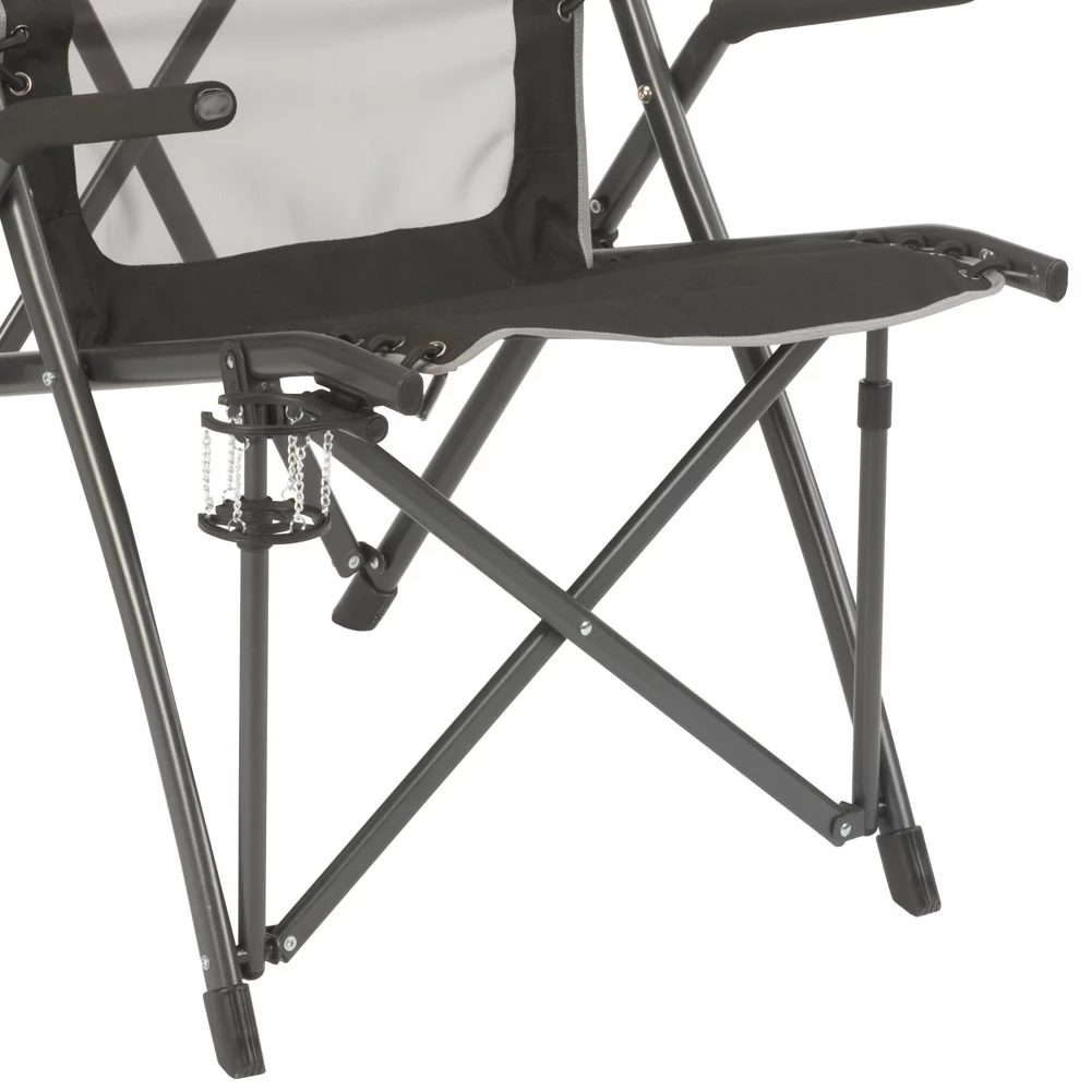 Sit in surprising comfort when you relax in a Coleman® ComfortSmart™ Suspension Chair. The Comfortsmart™ flexible bungee suspension system has just the right amount of give to deliver great comfort that remains incredibly supportive. The mesh back allows the breeze to cool you on hot days, while the padded solid arms let you relax in comfort for hours. The GlassP™ drink holder fits just about anything – including a wine glass or coffee cup. When you’re ready to head home, the chair easily folds up into a carry bag for easy transport and storage.