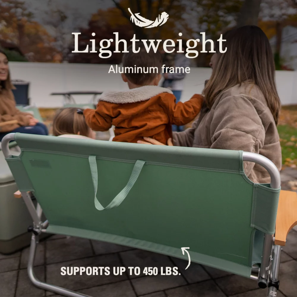 A loveseat for the outdoors? We’re in! The Coleman® Living Collection Bench is roomy enough to seat 2 people and supports 450 lbs., so go ahead and share or have it all to yourself. The lightweight frame makes it easy to move whether you’re in the backyard or at the campsite. Natural wood armrests add a stylish look that’s perfect for the patio or a glamping-inspired getaway. Made of high-quality polyester seat material that lasts season after season. Rain in the forecast? The bench folds up easily so you can store it away from the elements.