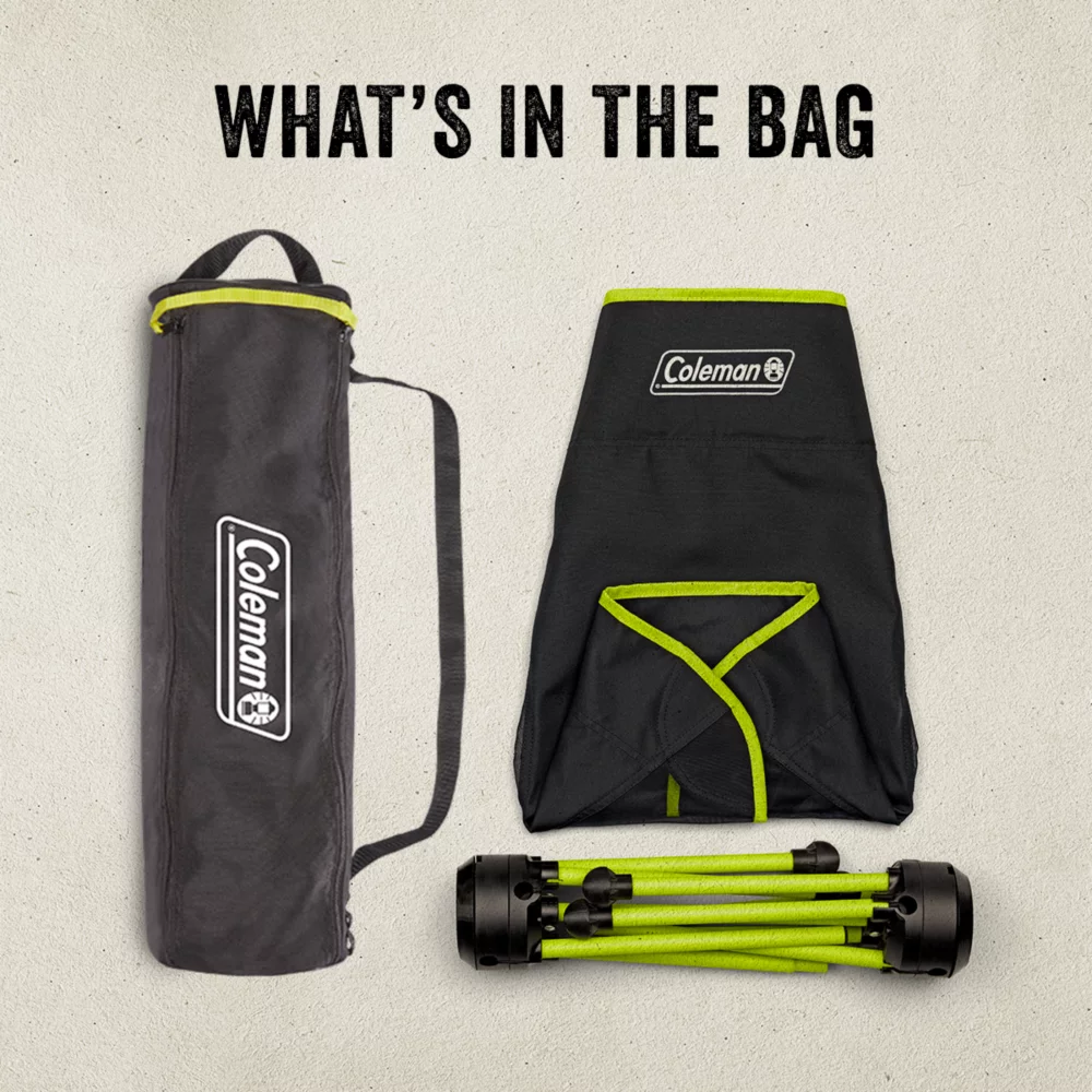 Beach-bound? Soak up the sun faster and give yourself up to 35% more storage space in the trunk, than the Coleman® Utopia Breeze Chair, with the packable Coleman Mantis Space-Saving Full-Size Low-Profile Chair. If you can’t wait to kick back, Coleman SpyderHubâ„¢ technology will help take the hassle out of setting up, with spring-loaded hubs that keep the fabric in place and shock cords to prevent poles from getting lost. Don’t let that ice-cold beverage get tipped over—unfold the top ring up and bottom ring down and you’ve got 2 built-in cup holders. Breathable mesh side panels improve airflow for extra comfort when the temps start to climb. Rounded feet keep the chair firmly in place, whether you want to stake your claim closer to the water or unofficially referee the family volleyball game. Found a better spot or see stormy weather on the horizon? Simply store the poles inside the hubs, slide open the double-zip carry bag and close it with the secure hook-and-loop closure. MOLLE loops on the outside of the carry bag make it easy to attach multiple MOLLE-compatible bags or gear for less trips to and from the car.