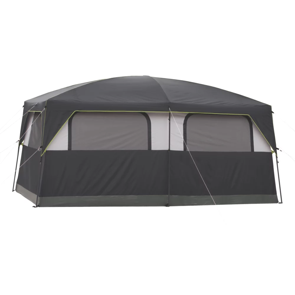 Everyone will look forward to family time when you take them camping in the ColemanĀ® Octagon 98 8-Person Tent. You’ll enjoy an open and roomy living area with the unique ocagon shape and vertical walls of this tent. If it rains, this tent Keeps You Dryā¦Guaranteedā¢, thanks to the WeatherTec⢠system, which uses a tub floor with patented corner welds, protected seams, and a covered zipper to help keep water out. Meahwhile, the strong frame is tested to withstand 35+ MPH winds. You’ll get even more weather protection from an included rainfly that has vents built into it to increase air circulation to help you stay cool and comfortable. Setup is simple with the color-coded poles and fly, the patented pin-and-ring system, and snag-free Insta-Clip⢠suspension. Illumiline⢠reflective guy lines are more visible at night so you don’t get tripped up if you need to take a walk in the dark. Two doors make it easy to enter and exit your tent. Inside, there’s enough room to stretch out on two queen-sized airbeds, and storage pockets help to keep small items organized. When it’s time to head home, the tent fits into an included carry bag for easy storage and transport.