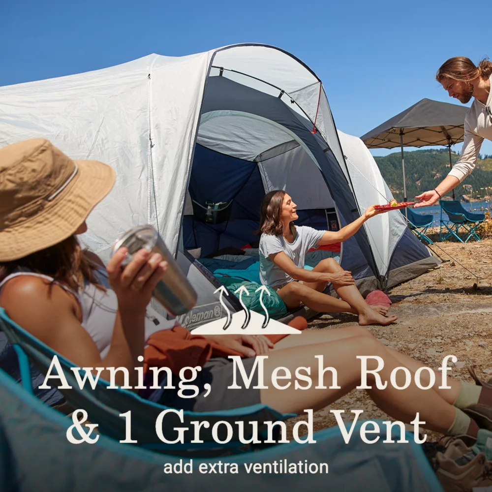 - WELL-VENTILATED: Awning, mesh roof, and 1 ground vent add extra airflow inside tent